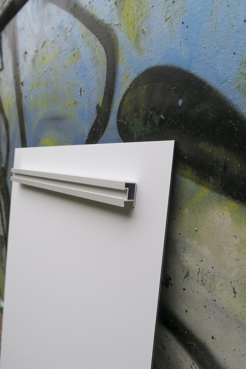 → Le Dibond® est un support plan fabriqué à partir d’une couche centrale en polyéthylène (un plastique de type noir) prise en sandwich par deux très fines plaques d’aluminium. Pour assurer une longévité maximale, les trois couches sont thermoliées entre elles ; il devient donc impossible de les séparer. Le Dibond® est résistant aux UV et à l’eau.